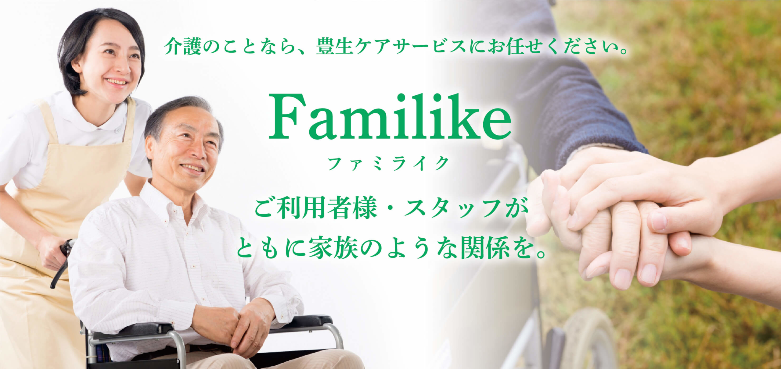 豊生ケアサービスは、Familike(家族のような)を合言葉に、スタッフと利用者様共に家族のような関係を目指しています。